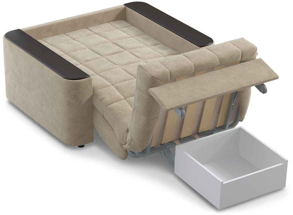 В качестве дополнительной опции к креслу-кровати предлагается бельевой короб, который устанавливается под механизм трансформации.