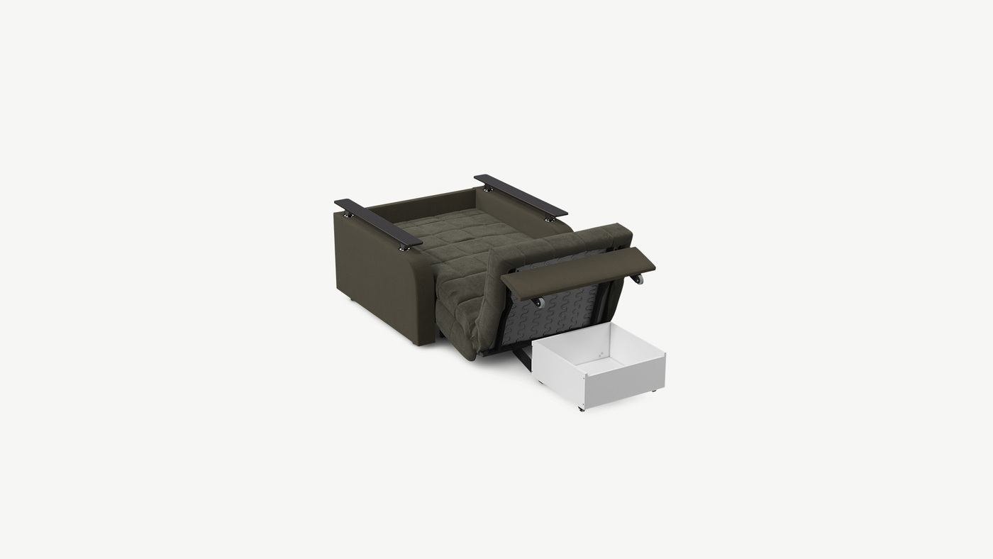 В качестве дополнительной опции к креслу-кровати предлагается бельевой короб, который устанавливается под механизм трансформации.