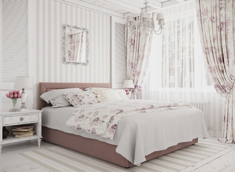 Фактура обивочного материала подбирается дизайнерами с учетом технологических и стилевых особенностей кровати.