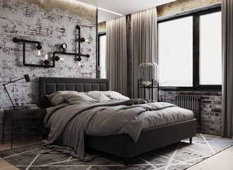 Фактура обивочного материала подбирается дизайнерами с учетом технологических и стилевых особенностей кровати.