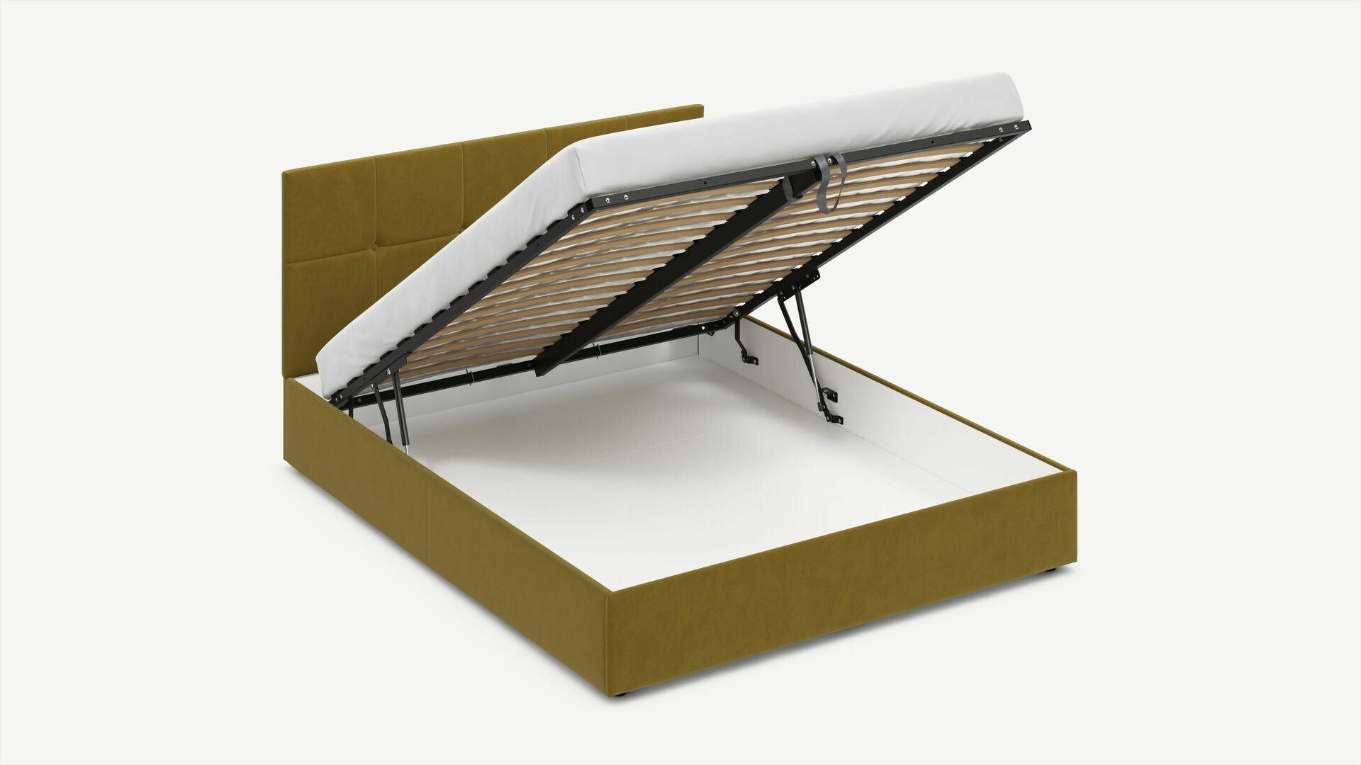• Скрытая под основанием вместительная емкость без внутренних перегородок позволяет использовать всю площадь подкроватного пространства для хранения вещей.